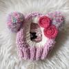 "W"ポポポーン帽 ダブルリボン付き(耳穴なし)ライトピンク