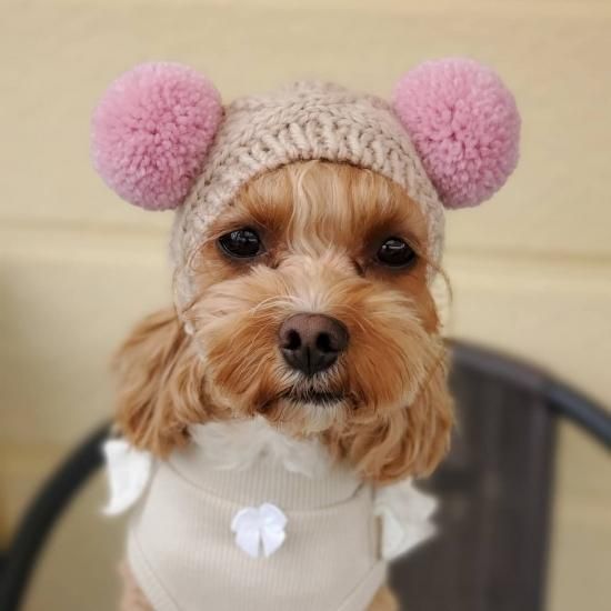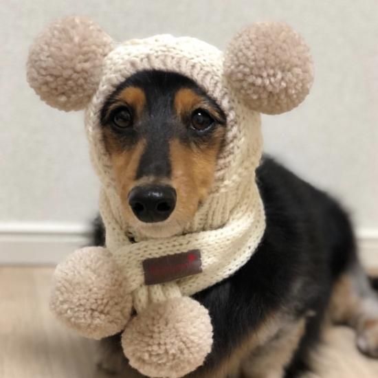 ワンちゃん用のBIGポポポーン帽。編み込み模様入りタイプです。