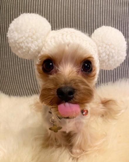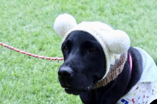 ワンちゃん用のBIGポポポーン帽。編み込み模様入りタイプです。
