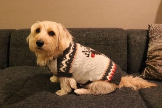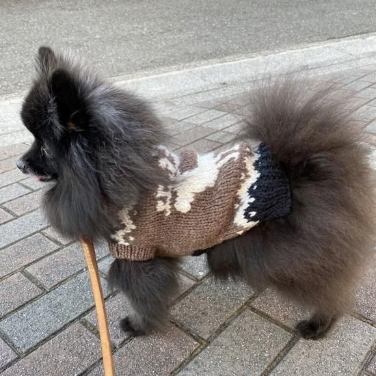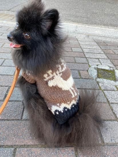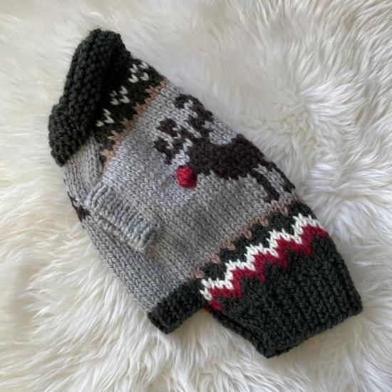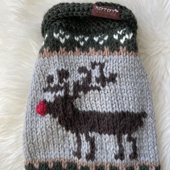 大人気のトナカイ柄です。背中には大きなトナカイ模様を編み込んでおります。