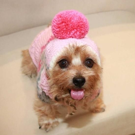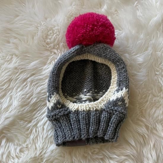 ワンちゃん用のBIGポポポーン帽。編み込み模様入りタイプです。