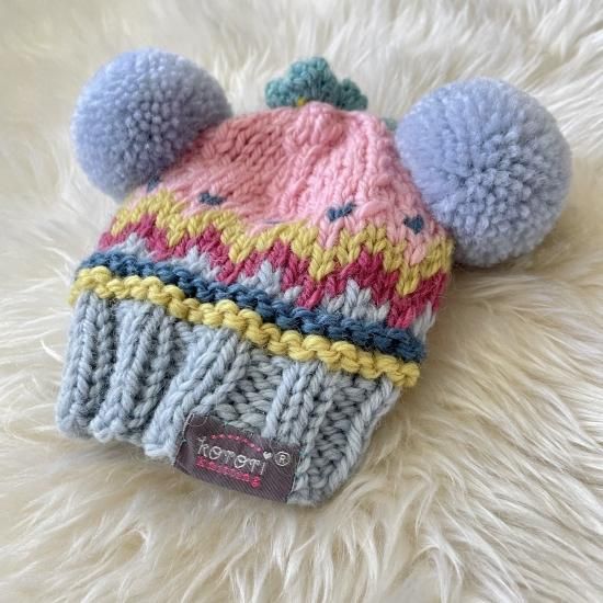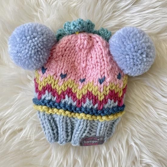 Wポポポーン帽編み込み模様入りタイプ。