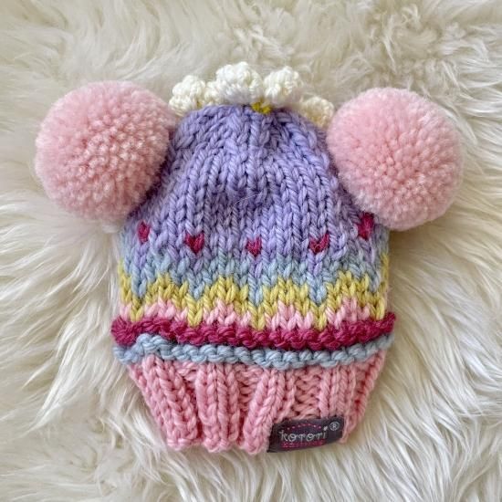 くまちゃんのようなポンポンがとても可愛い帽子です。