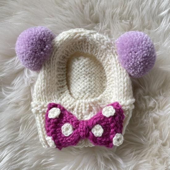 W'ポポポーン帽' 水玉蝶ネクタイ付き ライトパープル(耳穴なし)