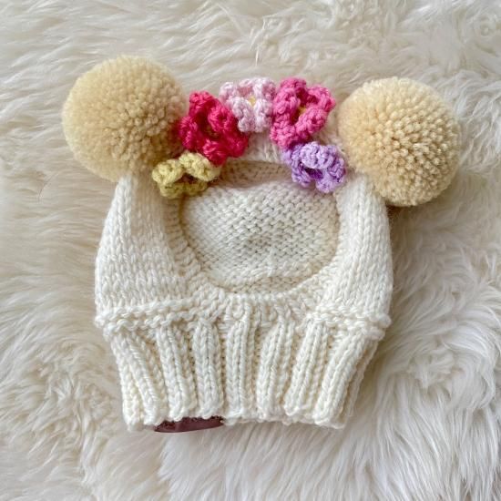 S"BIGポポポーン帽"お花付き ライトベージュ(耳穴なし)