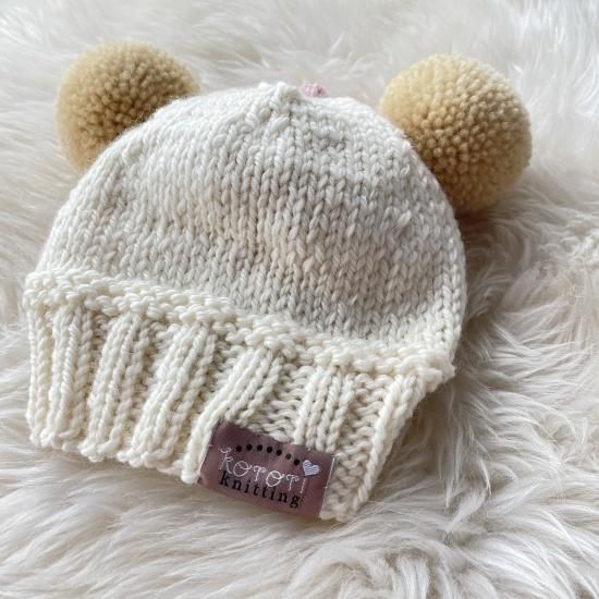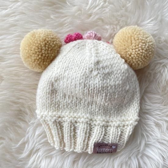くまさんのお耳のようなポンポンがとても可愛い帽子です。