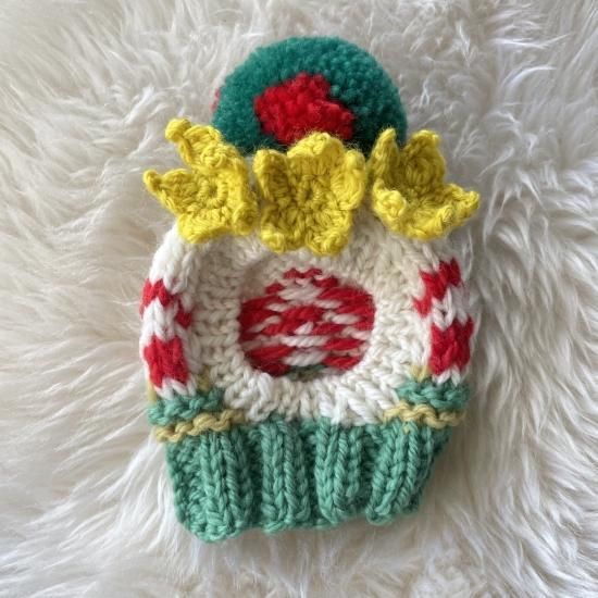 ワンちゃん用のBIGポポポーン帽。編み込み模様入りタイプです。