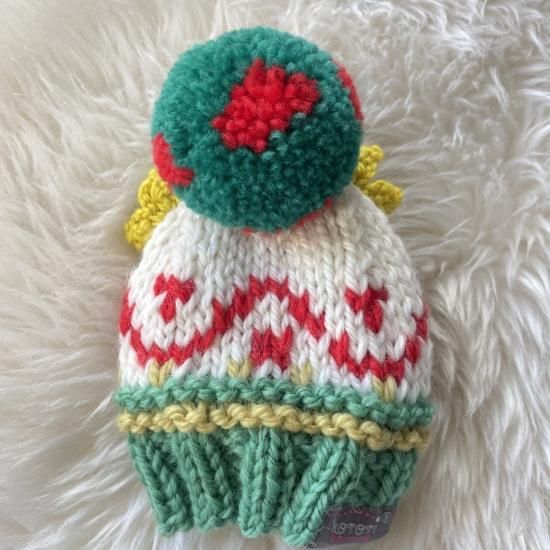 4L"BIG"ポポポーン帽 編み込み模様入り(耳穴なし)