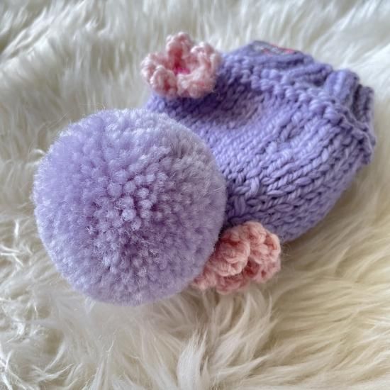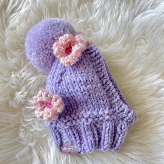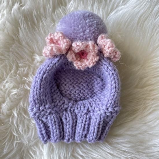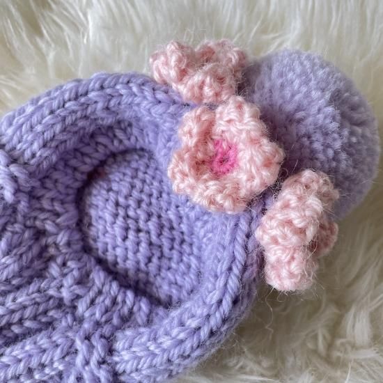 BIGポポポーン帽お花付き ラベンダー(耳穴なし)