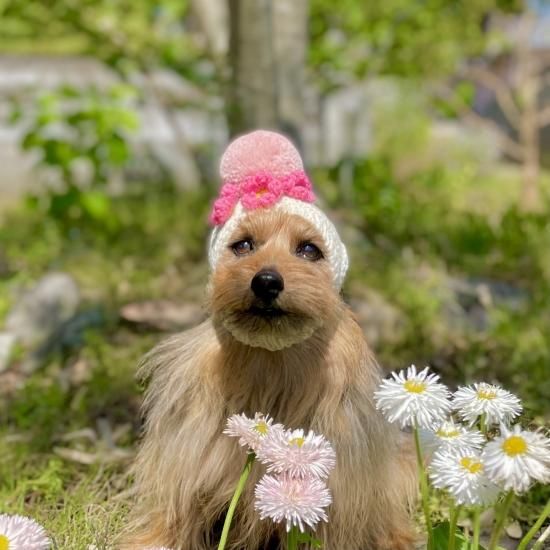 ワンちゃん用のBIGポポポーン帽お花付き。
