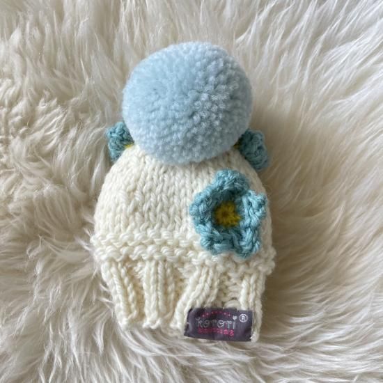 LL"BIGポポポーン帽"お花付き ツートンカラーブルー(耳穴なし)