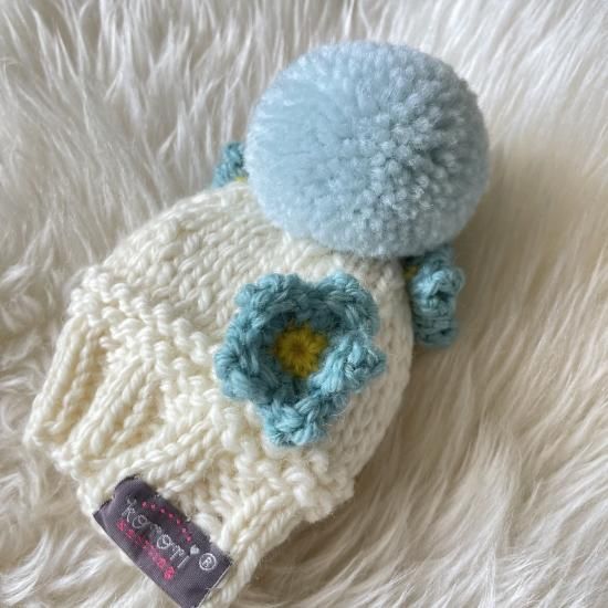 お花のサイズや編み方は帽子のサイズにより異なります。画像と少し違う場合もございますのでご了承ください。