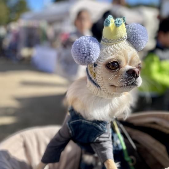 色違いのものですのですがワンちゃんがかぶったときの参考になさってください。