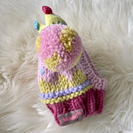 ワンちゃん用のBIGポポポーン帽。編み込み模様入りタイプです。