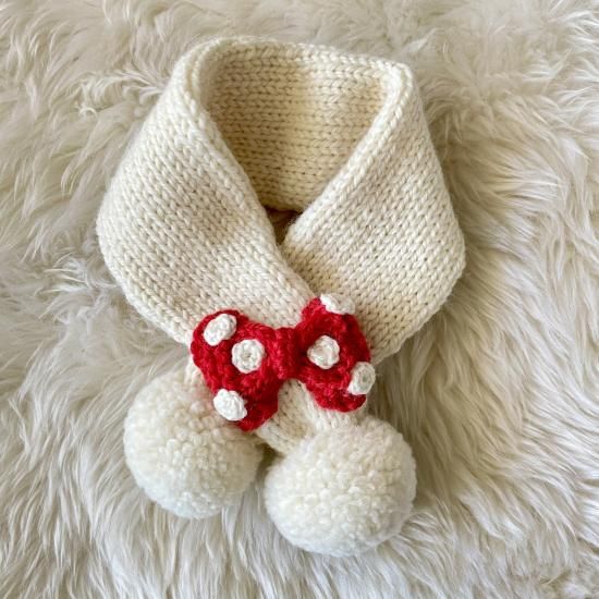 ワンちゃん用のポンポン付きマフラー水玉リボン付きです。