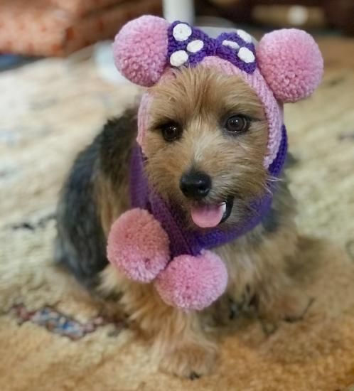 ワンちゃん用のBIGポポポーン帽。編み込み模様入りタイプです。