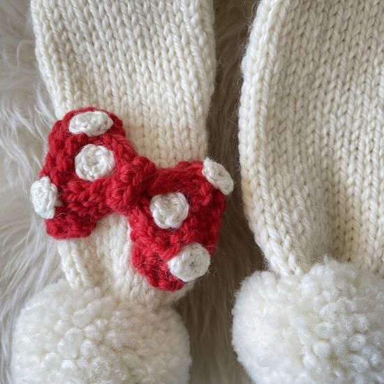 LL W"ポポポーン帽" 水玉リボン付き ピーチ赤リボン(耳穴なし)