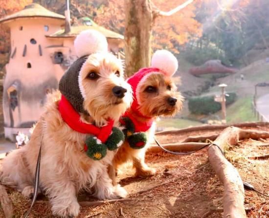 ワンちゃん用Wポポポーン帽。水玉蝶ネクタイ付きです。