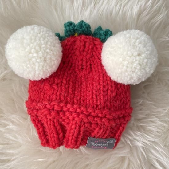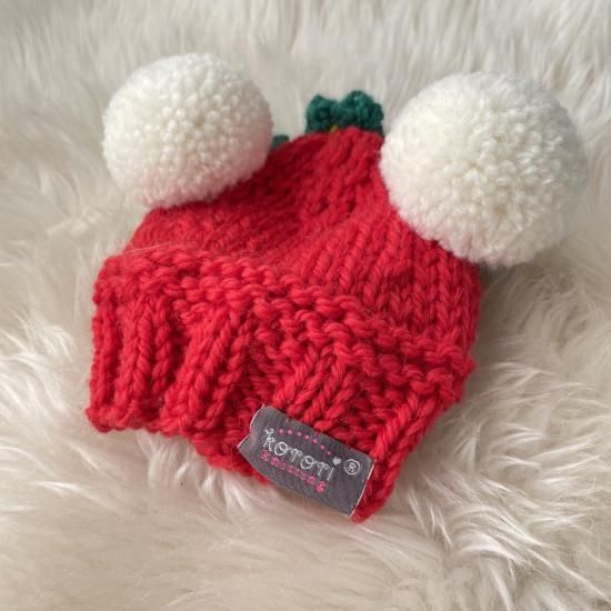 "Wポポハートドットリボン帽 レッド(耳穴なし)