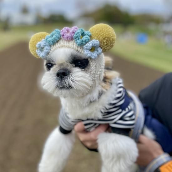 ワンちゃん用のBIGポポポーン帽お花付き。