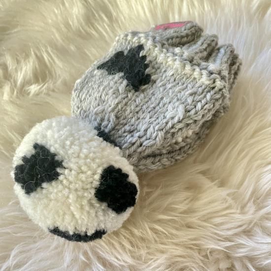 Wポポポーン帽編み込み模様入りタイプ。