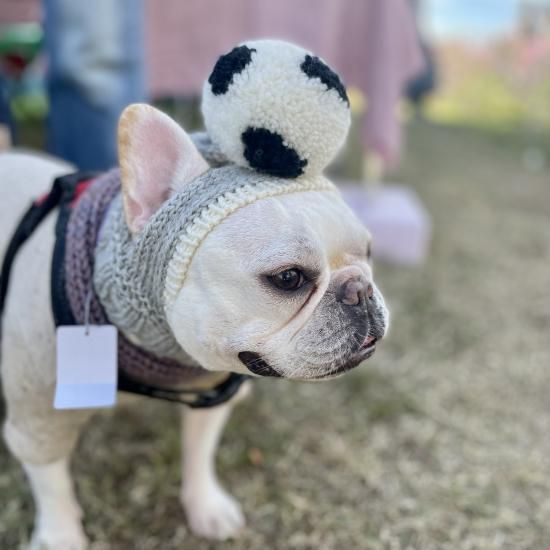 ワンちゃん用のBIGポポポーン帽。編み込み模様入りタイプです。