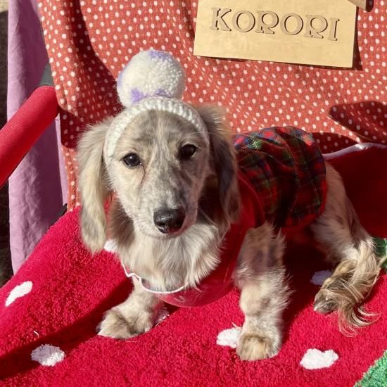 ワンちゃん用Wポポポーン帽。水玉蝶ネクタイ付きです。