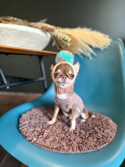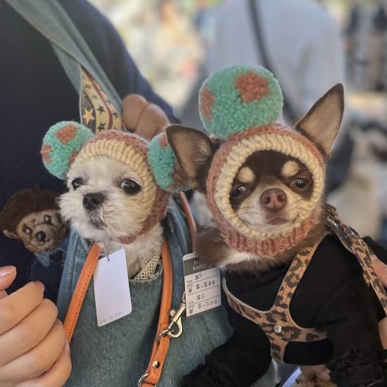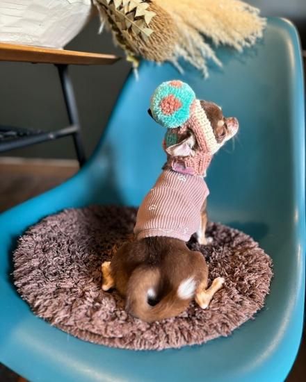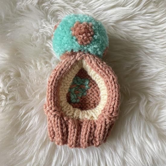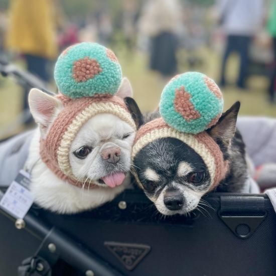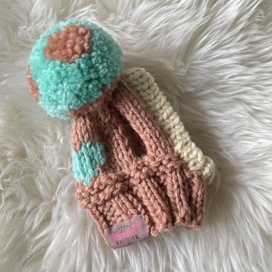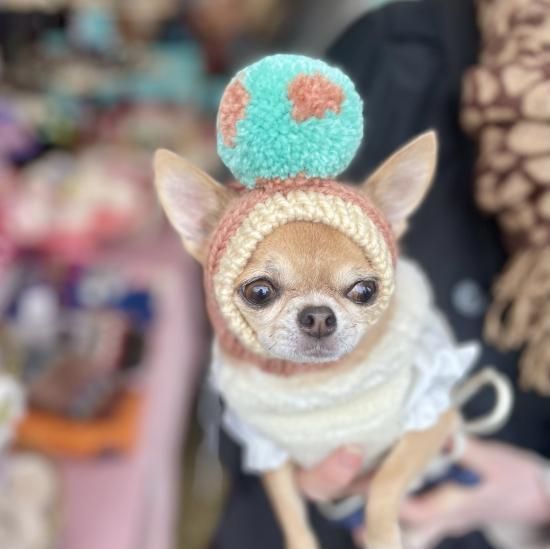 ワンちゃん用のBIGポポポーン帽。編み込み模様入りタイプです。