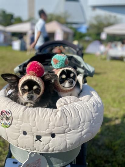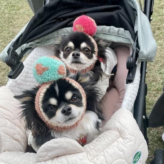 ワンちゃん用Wポポポーン帽。水玉蝶ネクタイ付きです。