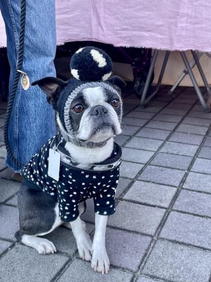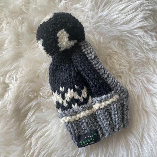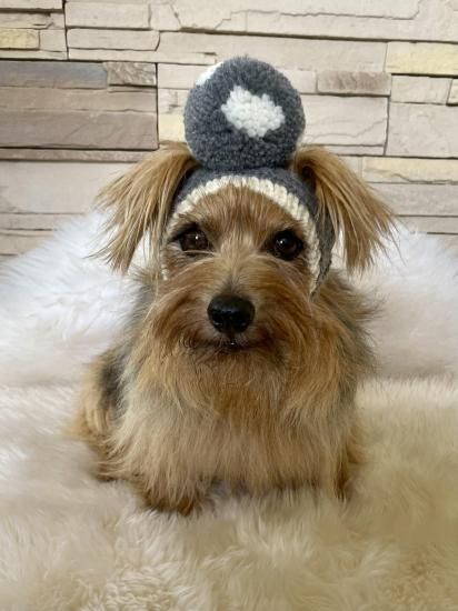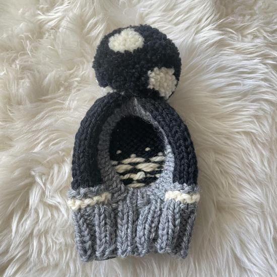 ワンちゃん用のBIGポポポーン帽。編み込み模様入りタイプです。