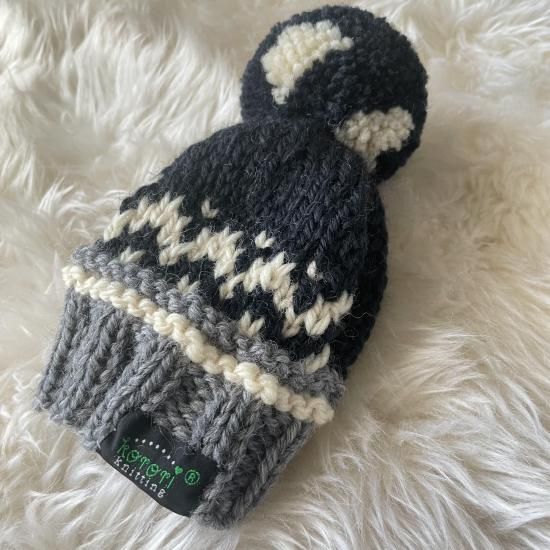 4L"BIG"ポポポーン帽 編み込み模様入り(耳穴なし)