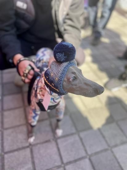 ワンちゃん用のBIGポポポーン帽お花付き。