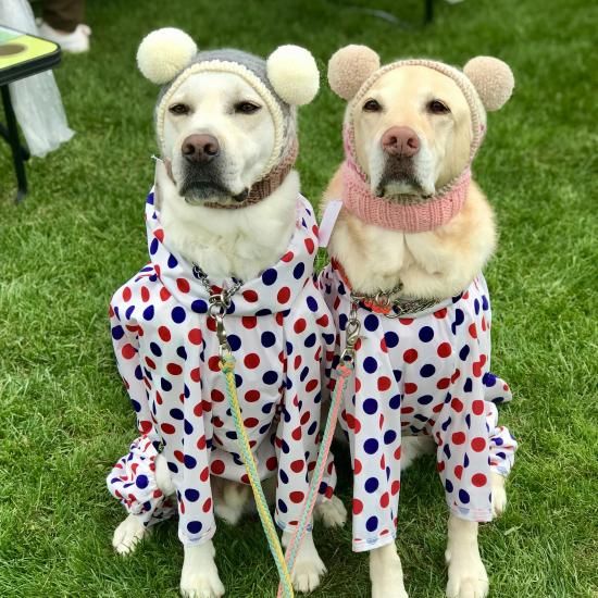 ワンちゃん用Wポポポーン帽。水玉蝶ネクタイ付きです。