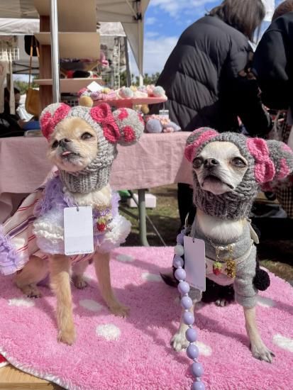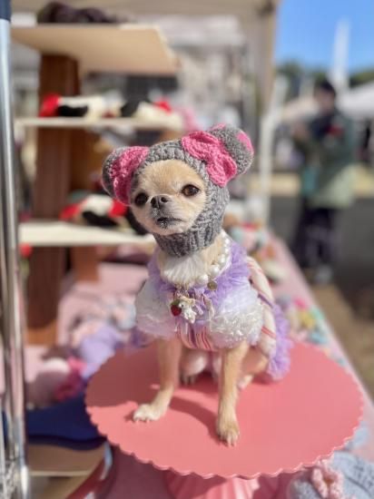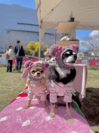 ワンちゃん用Wポポポーン帽。リボン付きです。