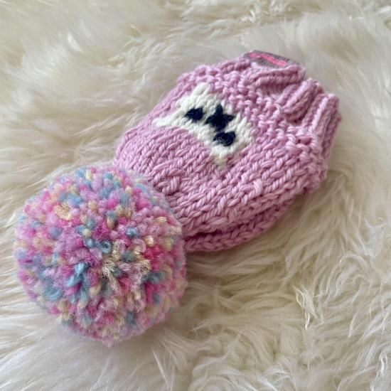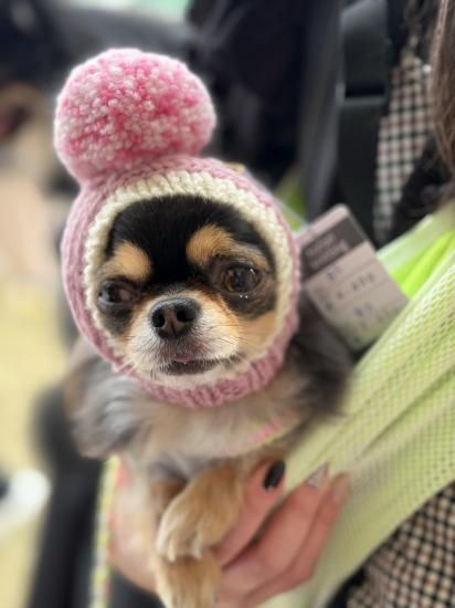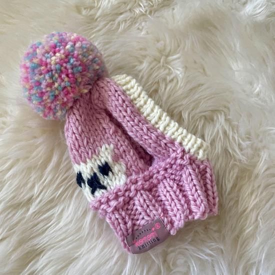 ワンちゃん用の手編みのニット帽子"ポポポーン帽®︎"の新作、お耳を出せる耳出しバージョンです。