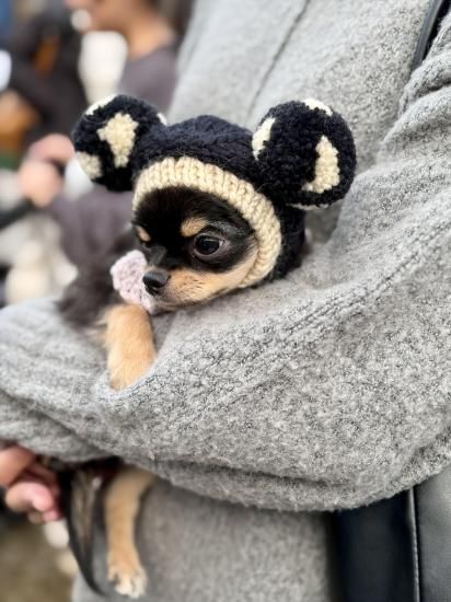 お耳を帽子の中に入れてスッポリ頭を覆うので暖かくて被せやすいお帽子です。