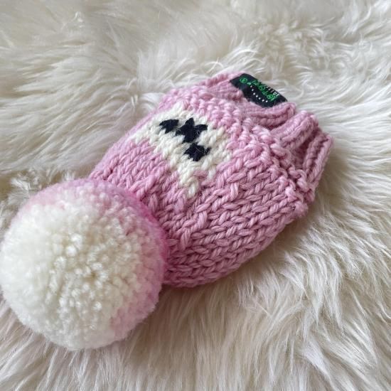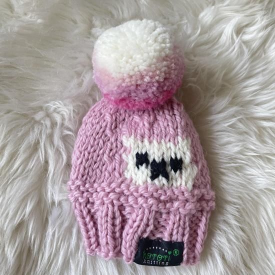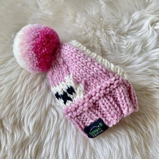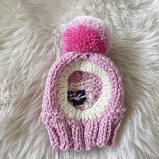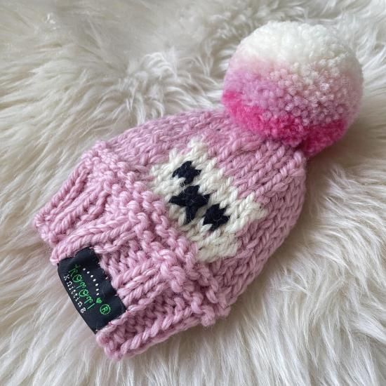 LL"BIG"ポポポーン帽 編み込み模様入り ピンク(耳穴なし)