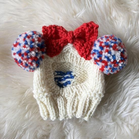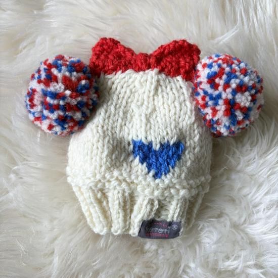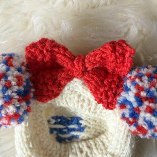 ポンポン耳…オフホワイト、ブルー、レッドのミックス
