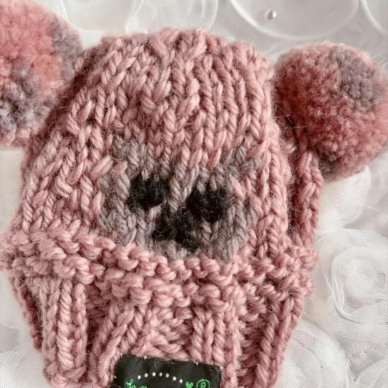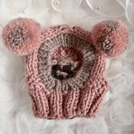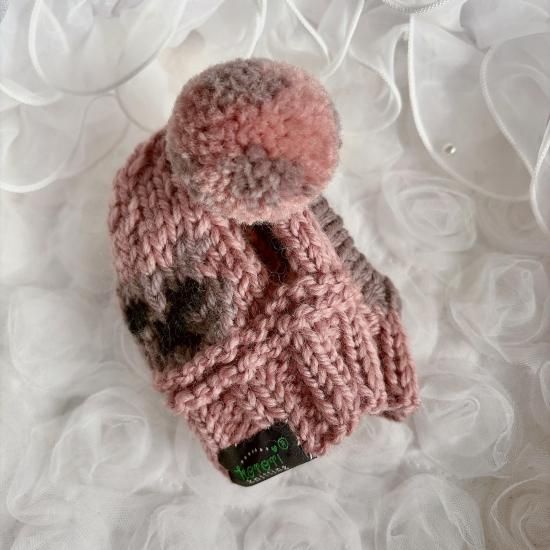 LL"BIG"ポポポーン帽 編み込み模様入り ピンク(耳穴なし)