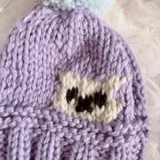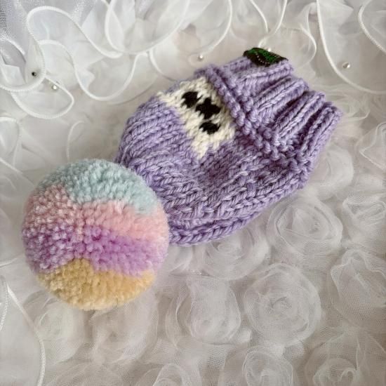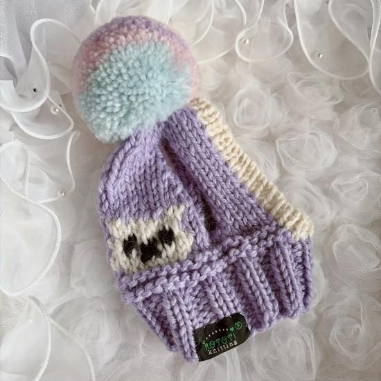 5L"BIG"ポポポーン帽 編み込み模様入り パープル(耳穴なし)