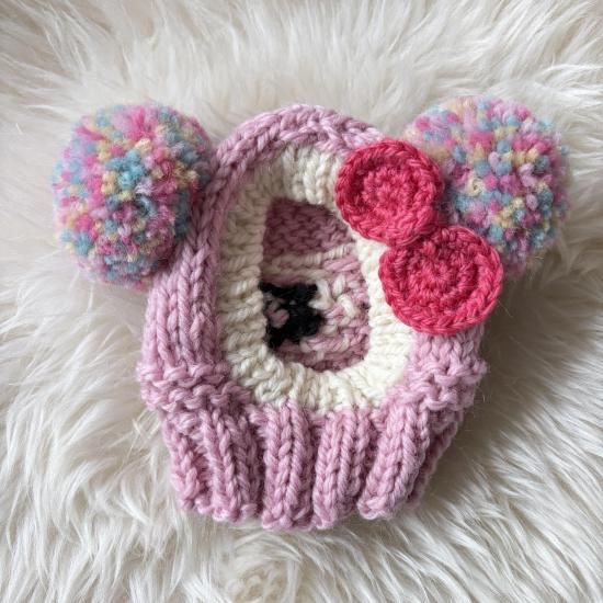 サイドリボン白くまMixポポポーン帽 (耳穴なし)ライトピンク