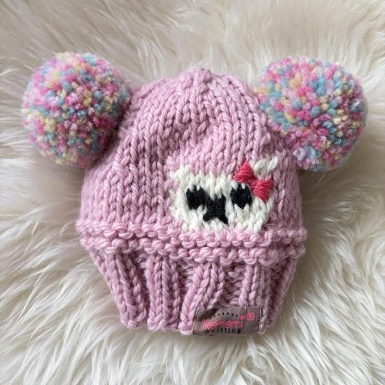 "W"ポポポーン帽 ダブルリボン付き(耳穴なし)ライトピンク