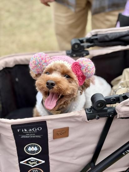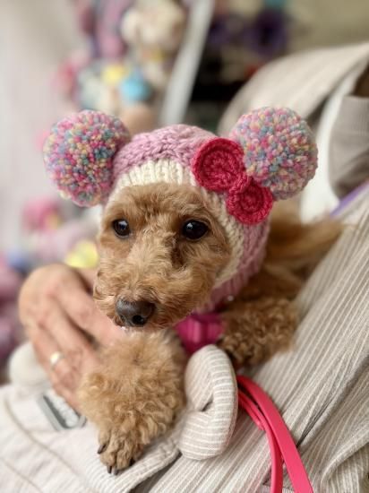 ワンちゃん用Wポポポーン帽。水玉リボン付きです。