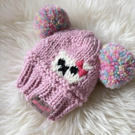 耳出しBIGポポポーン帽。白くまちゃんミックスポンポン付きです。