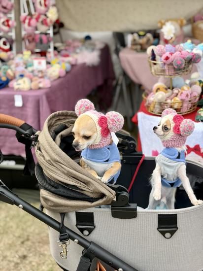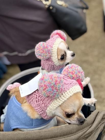 ワンちゃん用Wポポポーン帽。Wリボン付きです。