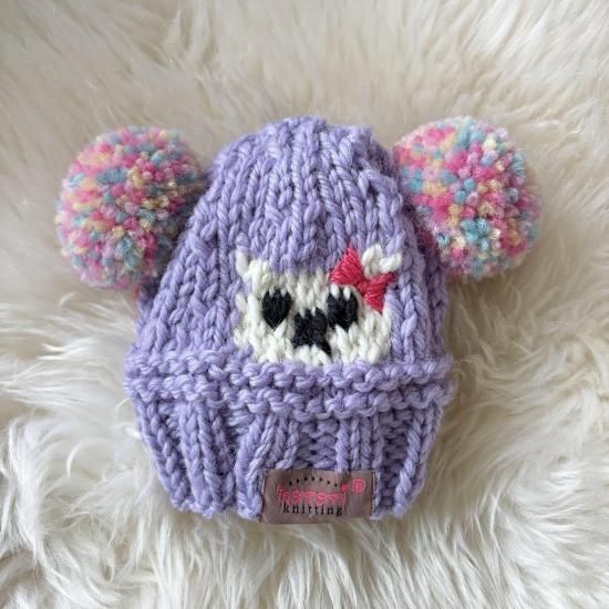 "Wポポポーン帽ハートドット ダブルリボン付き ラベンダー(耳穴なし)
