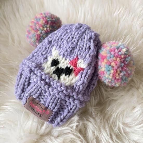 白くまちゃんミックスポンポン耳出し "BIG"ポポポーン帽 ラベンダー