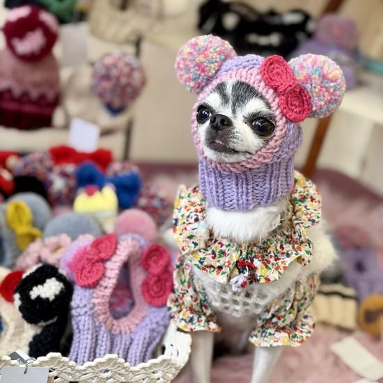 ワンちゃん用Wポポポーン帽。水玉リボン付きです。