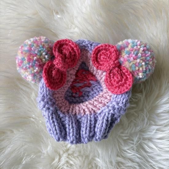 "W"ポポポーン帽 ダブルリボン付き(耳穴なし)ラベンダーピンク