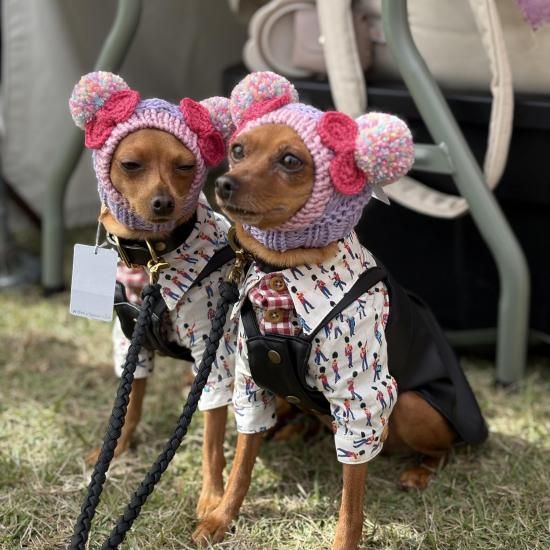 ワンちゃん用の手編みのニット帽子"ポポポーン帽®︎"です。